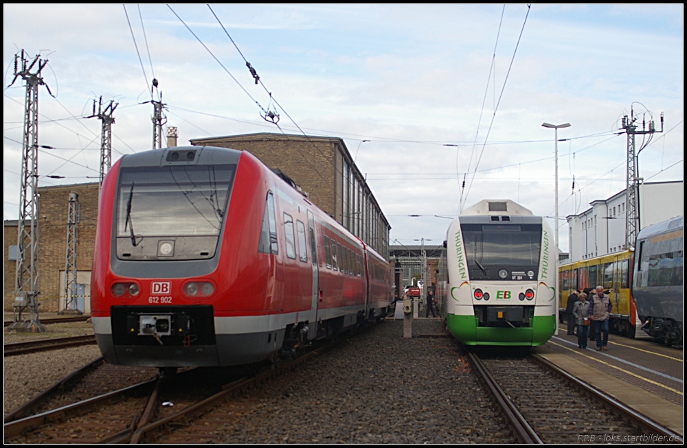 DB 612 901 / 612 902 ist ein Dieseltriebwagen aus dem Hause Bombardier und weit verbreitet. VT 201 (NVR-Nummer 95 80 0615 201-0 D-EIB, IT D2.0.001) ist ein Triebfahrzeug der Baureihe 615 und ist ein Einzelstück. Das EVU Erfurter Bahn GmbH hat das Fahrzeug damals zur Erprobung übernommen, jedoch kein weiteres bestellt (Tag der offenen Tür Bombardier Hennigsdorf 18.09.2010) Frank Paukstat