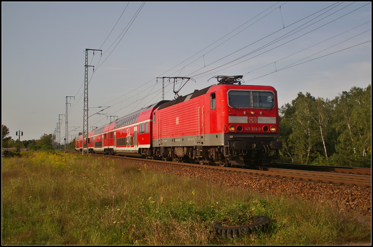 ODEG ET 445.108 / 445 108-4 fuhr am Abend des 30.08.2017 als RE2 Cottbus durch die Berliner Wuhlheide