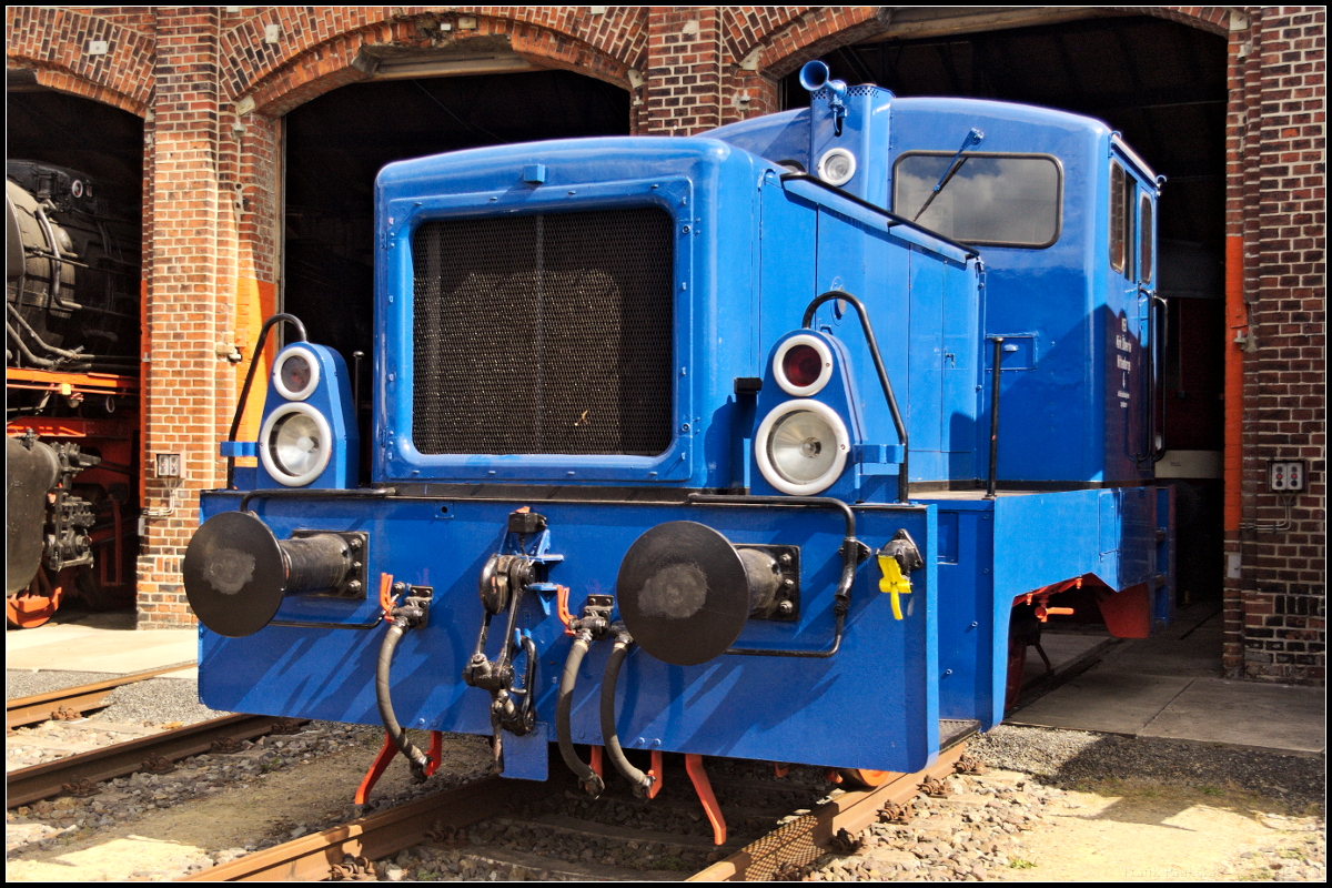Mit Neulack versehen stand am 08.09.2018 die MHG 21 der Magdeburger Hafen GmbH auf den Gleisen am Wissenschaftshafen. Während des Familienfest der Magdeburger Eisenbahnfreunde e.V. konnte die Lok am 08.09.2018 entdeckt werde. Gebaut wurde die V 22 im Jahr 1967 bei LKM mit der Nummer 262005 und wurde im gleichen Jahr an VEB Gießereianlagen Leipzig ausgeliefert. 1969 kam sie nach Magdeburg-Rothensee zum VEB Magdeburger Armaturenwerke "Karl Marx". Bei der Stahlgießerei in Rothensee blieb sie bis zur Stillegung. Als MHG 21 übernahm sie dann die Magdeburger Hafenbahn. Da sie nur auf den Gleisen des Firmengeländes unterwegs war, hat sie nie eine Registrierung erhalten.