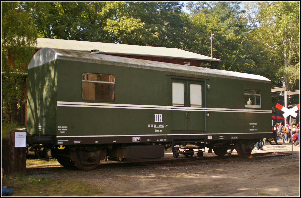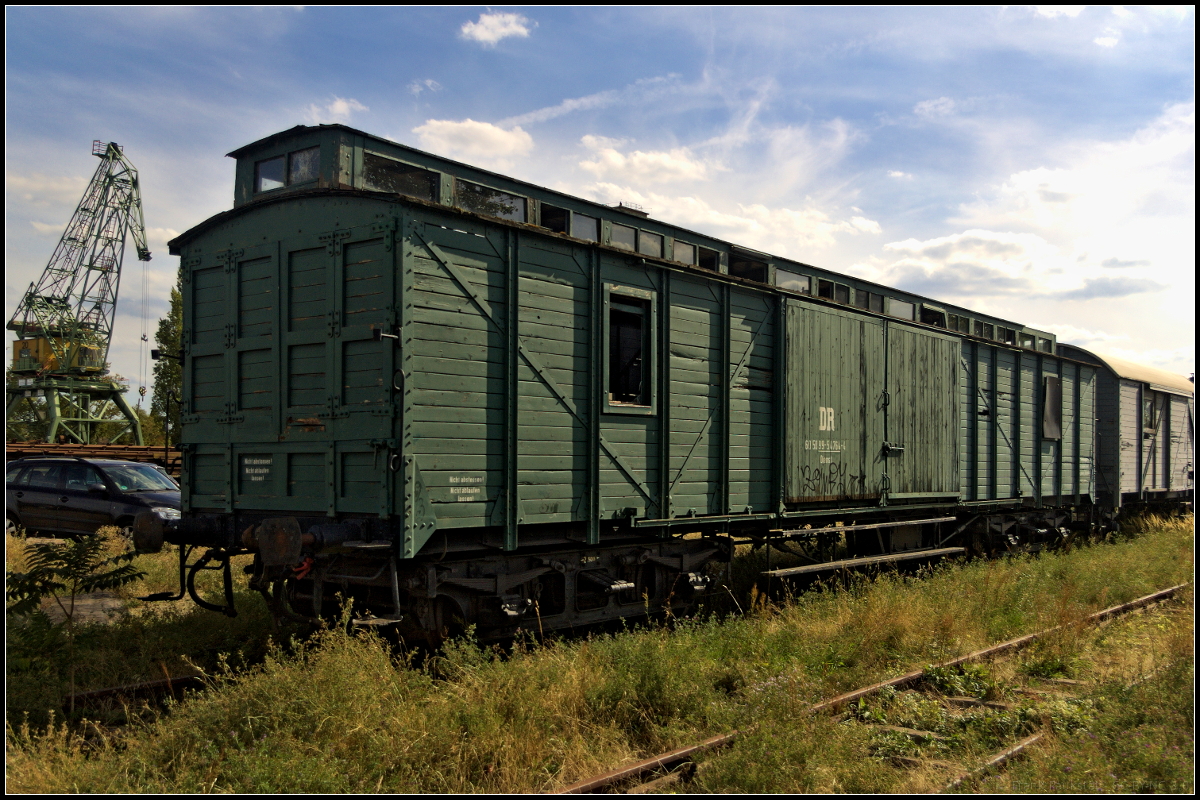 Man sieht es ihm nicht an, es ist mal ein Rekowagen der Gattung Bghw gewesen. Der Wagen mit Steuerpult wurde bei der DB AG Notfalltechnik als Aufenthaltswagen in einem Hilfszug eingesetzt, daher auch die einst rote Lackierung. Am 15.09.2018 stand der Wagen mit sehr viel Graffiti während des 15. Berliner Eisenbahnfest neben der windschiefen Laterne abgestellt und dient nun als Schulungswagen (D-DLFB 60 80 99-01 518-2 Dienst).
