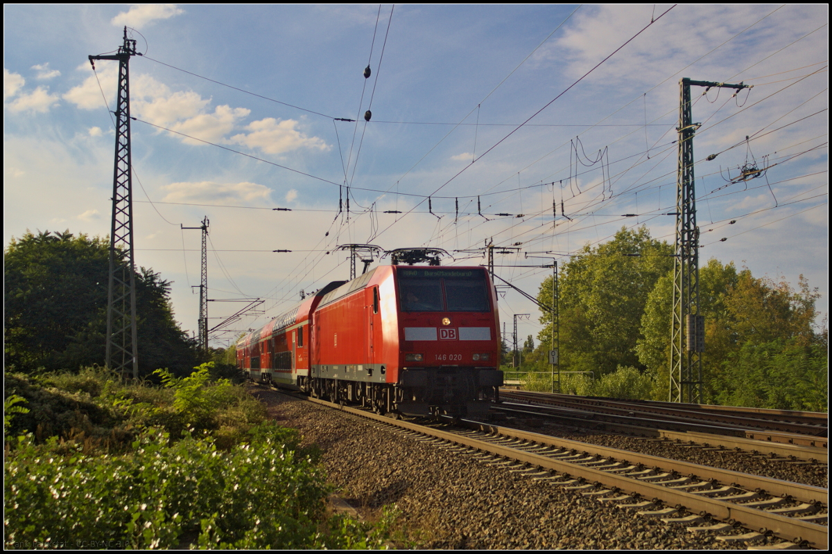 DB Regio 146 030-2 fuhr mit der RB40 Burg (b. Magdeburg) am 08.09.2018 Richtung Magdeburg Elbbrücke