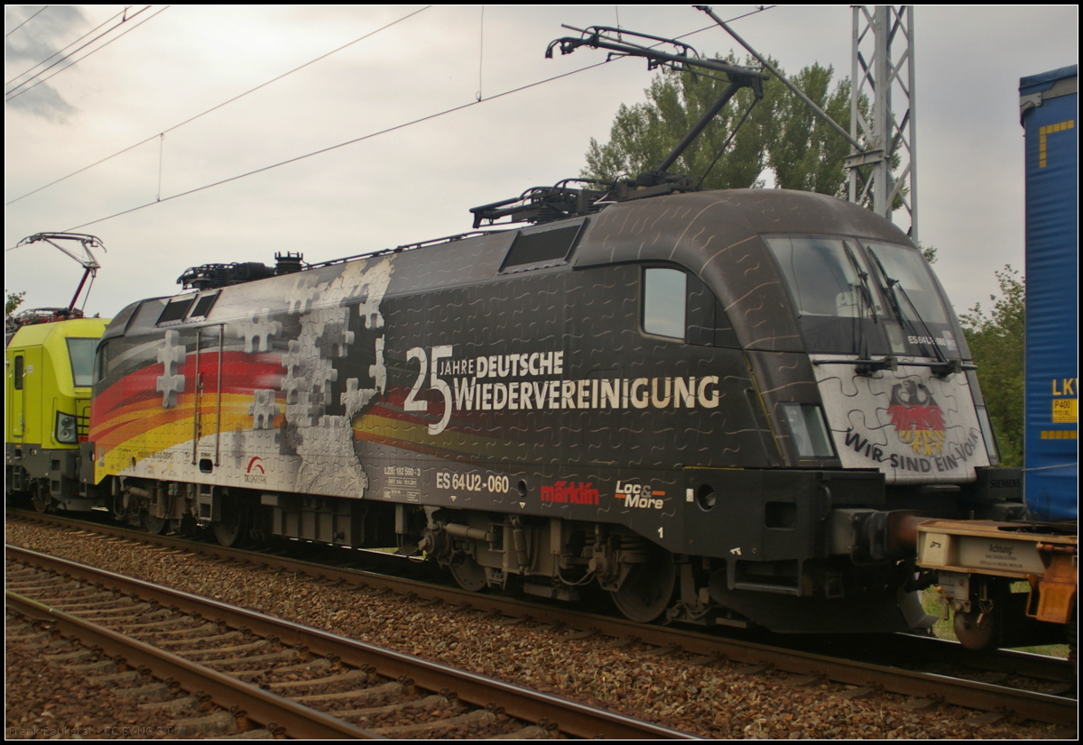 TX Logistik 193 552-7 'Responsibility Driven' noch einmal in Großaufnahme. Sie fuhr am 09.07.2017 mit ES 64 U2-060 und dem 'LKW-Walter'-KLV durch die Berliner Wuhlheide
