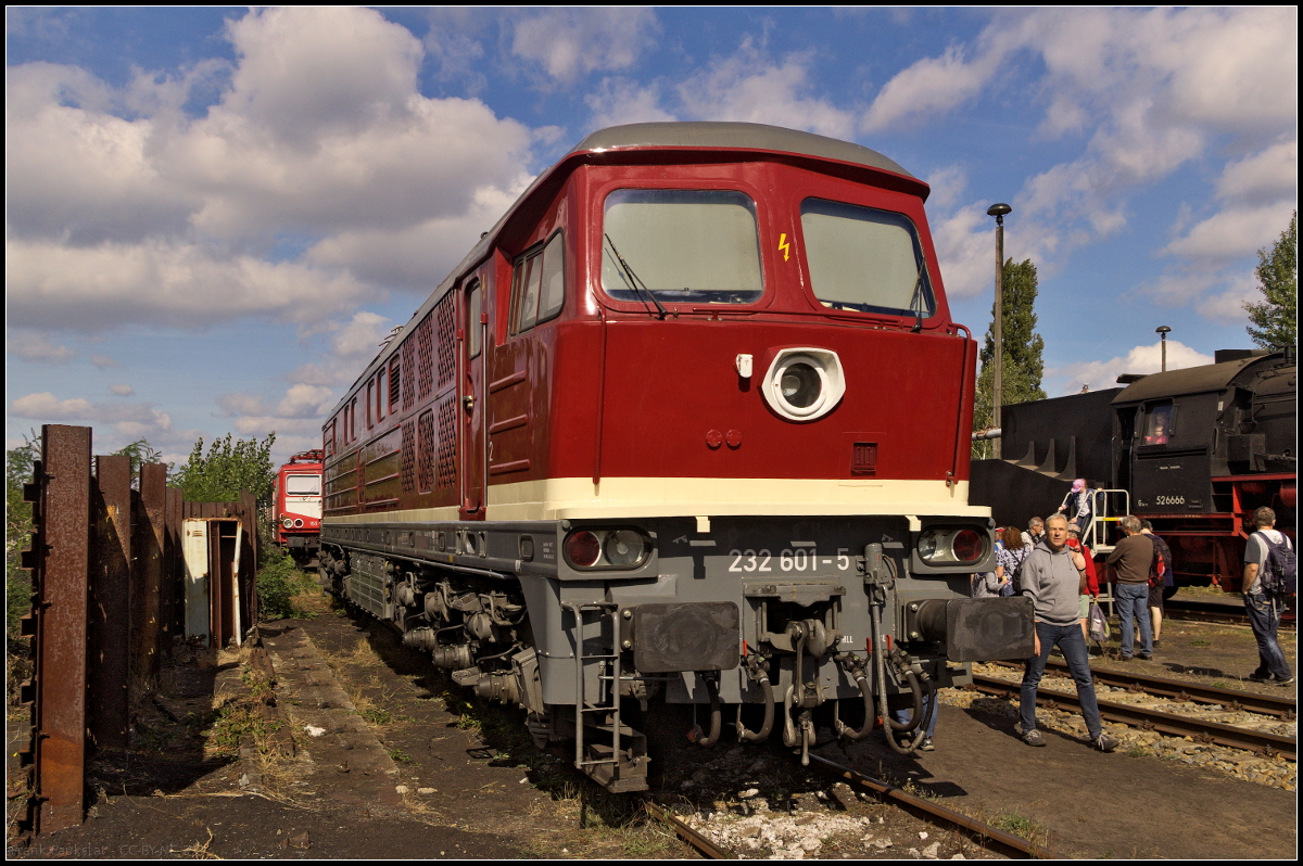 Zu Gast beim 15. Berliner Eisenbahnfest war auch WFL 155 159-7 im orientrot/weißen Lack. Sie stand mit anderen Loks am 15.09.2018 auf dem Gelände des alten Betriebsbahnhof Schöneweide.