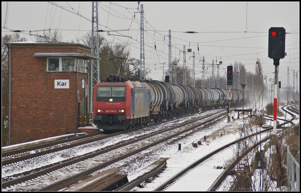 DB Schenker 155 055-7 mit einem Kesselwagenzug am 21.02.2013 Höhe Berlin-Karow