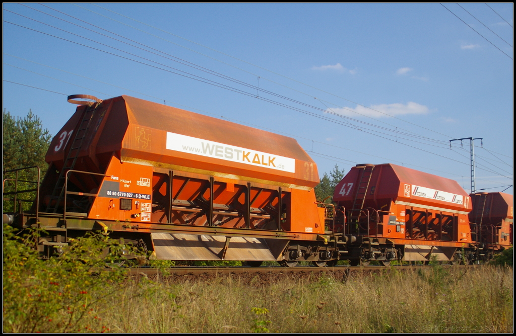 D-DB 31 80 4672 047-6 Shimms-tu 718 ist ein Wagen mit verschiebbaren Planenverdeck zum Transport von Coils der DB Schenker AG in einem Zug weiterer Shimms, der am 18.09.2014 durch die Berliner Wuhlheide fuhr