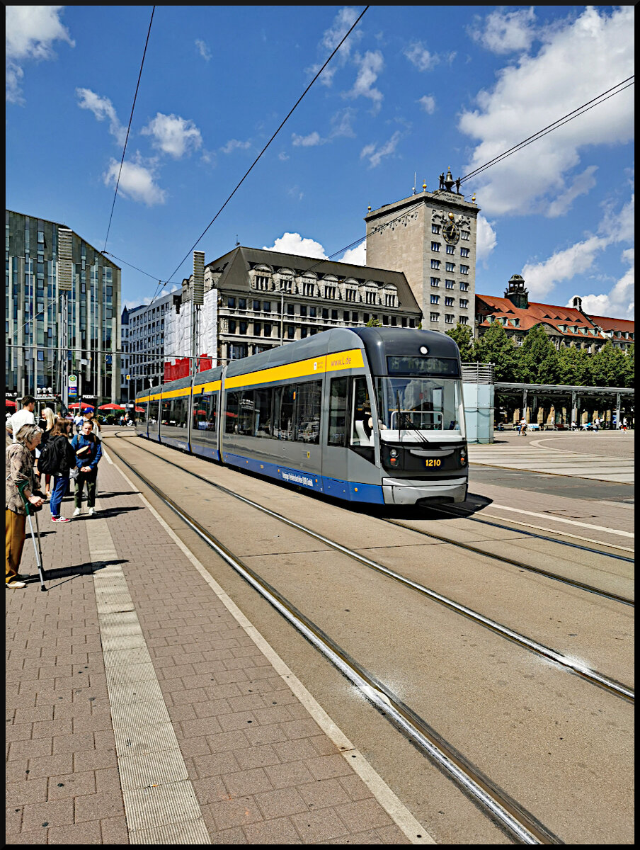 DVB 2823 auf der Linie 3 nach Wilder Mann. Mit 45m Länge war dieser Typ 2004 Weltrekordhalter. Der Wagen ist komplett durchgängig. (Typ NGTD12DD, Dresden Hbf 27.03.2010)