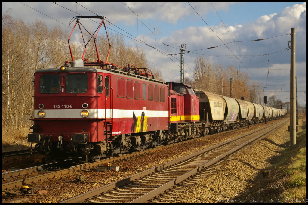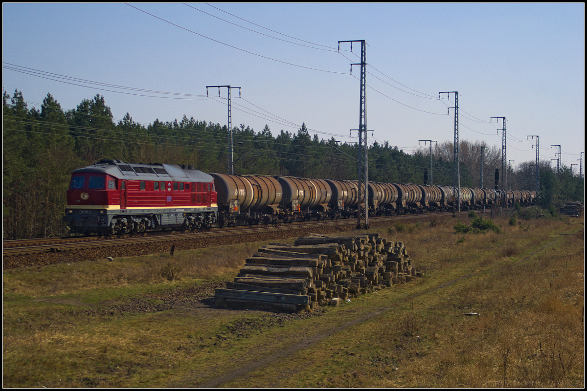 Die bei der Erfurter Bahnservice Gesellschaft (EBS) eingesetzte 187 300-9 zog einen leeren Holzzug am 30.08.2017 durch die Berliner Wuhlheide