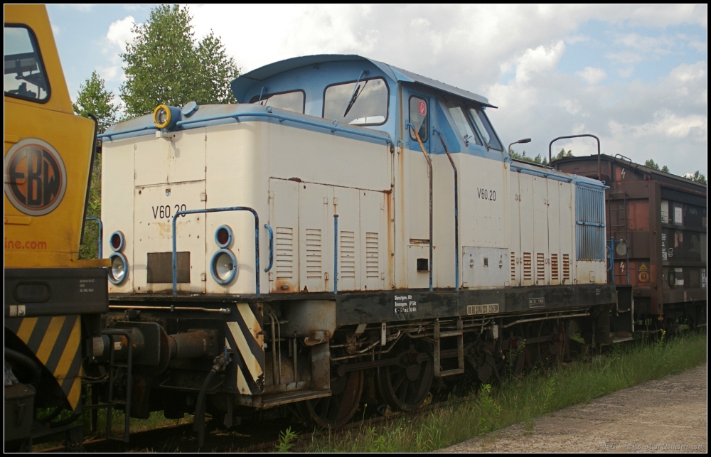 EBW V 60.20 steht hinter einer weiteren EBW-Lok auf einem Seitengleis im NETINERA-Werk in Neustrelitz. Inwieweit die EBW-Lok nochmal zum Einsatz kommen wird steht in den Sternen (NVR-Nummer 98 80 3345 223-2 D-EBW, gesehen Tag der offenen Tür NETINERA Bahnwerk Neustrelitz 17.06.2011) Frank Paukstat