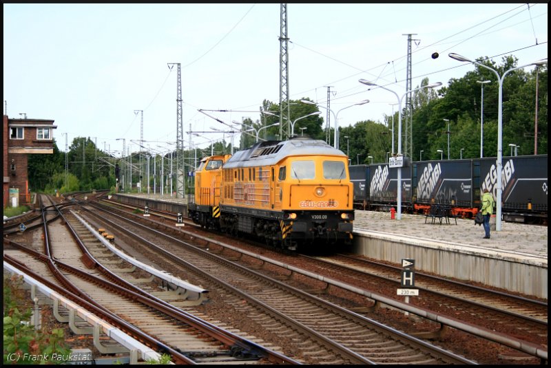 EBW V 300.09 auf dem Weg nach Magdeburg-Rothensee. Dahinter läuft EBW V 100.17 (ex TLG 9 "Bärbel", HeiNaGanzlin, DR 230 077, gesehen Berlin Wannsee 19.06.2009) Frank Paukstat