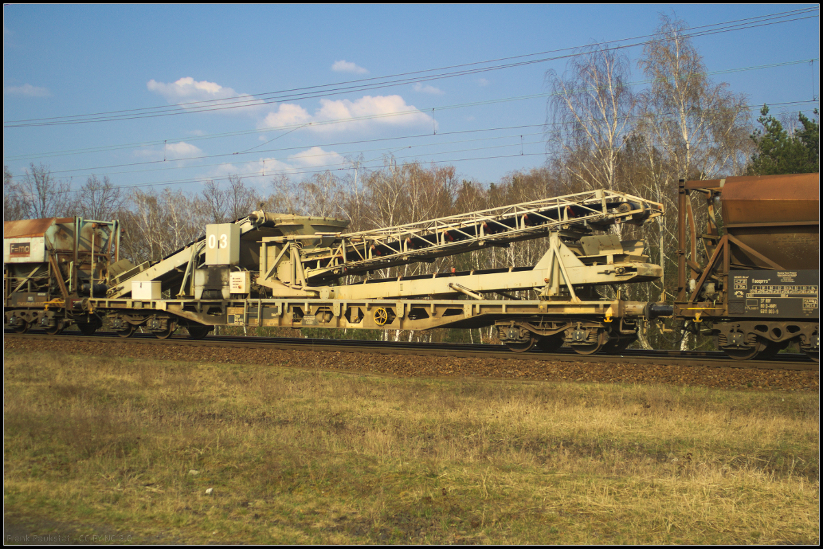 Die von HHPI eingesetzte RL002 / 266 032-2 fuhr mit Kies am 26.05.2017 durch die Berliner Wuhlheide (Standort öffentlich zugänglich)