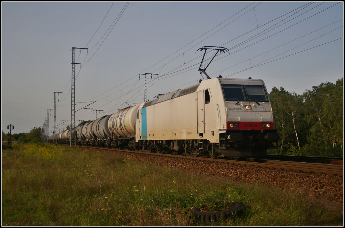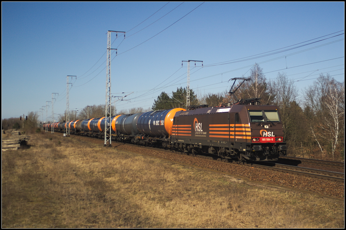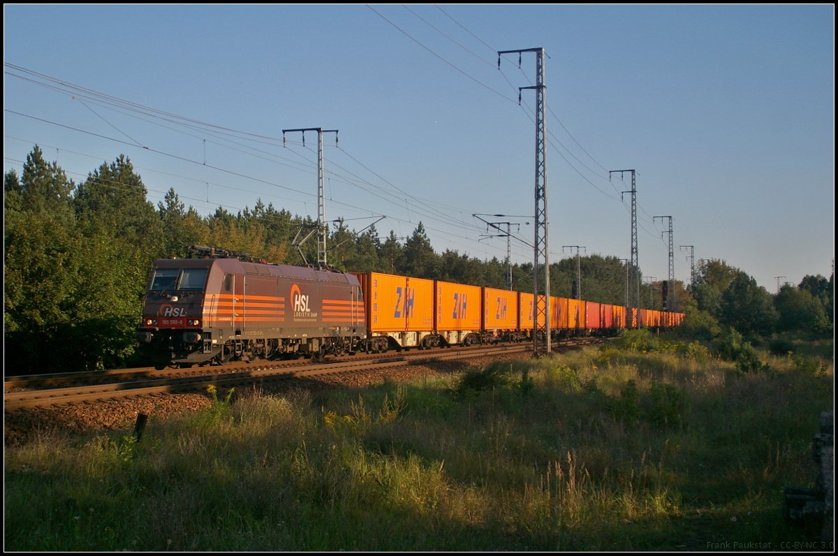 Bei immer länger werdenden Schatten kam am 11.05.2017 HSL 185 687-1 mit Schrott durch den Bahnhof Berlin-Hohenschönhausen gefahren