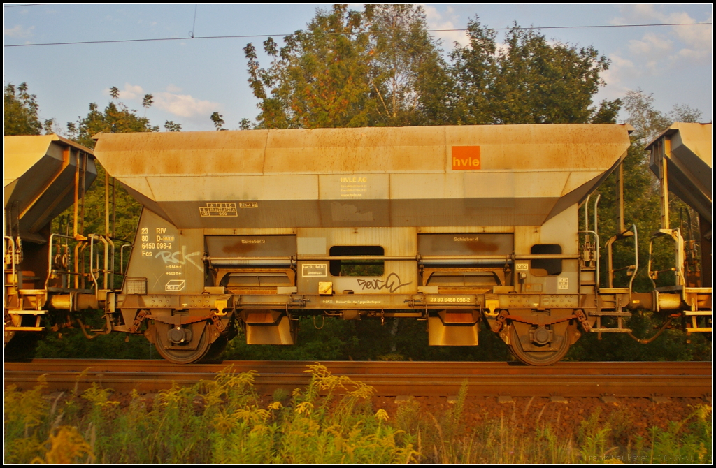 hvle V 160.10 / 203 142-5 und hvle V 160.4 zogen einen Getreidezug der Fa. Bohnhorst am 06.04.2018 durch die Berliner Wuhlheide.