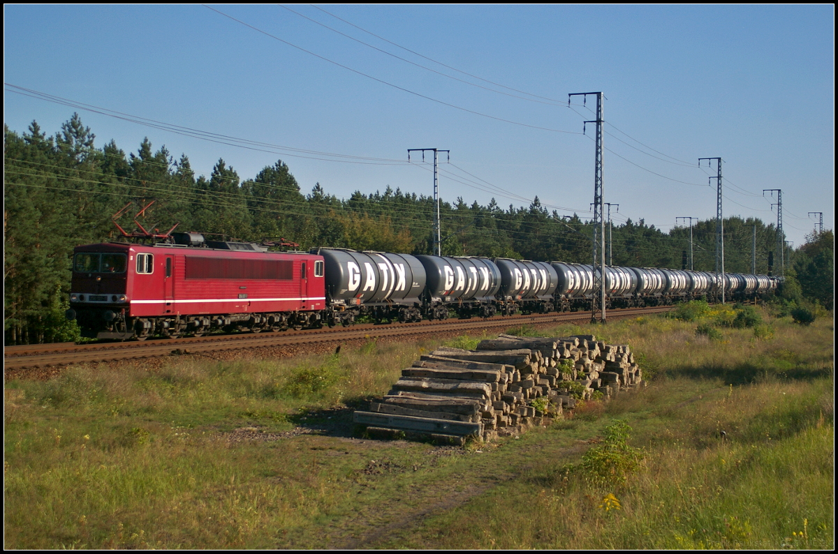 LEG 202 703 (NVR-Nummer: 92 80 1203 230-8 D-LEG, ex ALS, DR) und LEG 202 327-3 mit polnischen Zas-Wagen (Biodiesel) am 21.07.2009 als 59594/49322 in der Berliner Wuhlheide nach Szczecin-Gumience