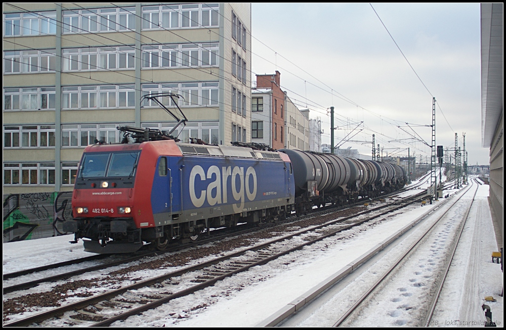 Für DLC (Dillen & Le Jeune Cargo N.V., Boom) ist die von SBB cargo angemietete 482 014-8 mit einem Kesselzug am 03.01.2011 in Berlin-Wedding unterwegs (NVR-Nummer: 91 85 4482 014-8 CH-SBBC) Frank Paukstat