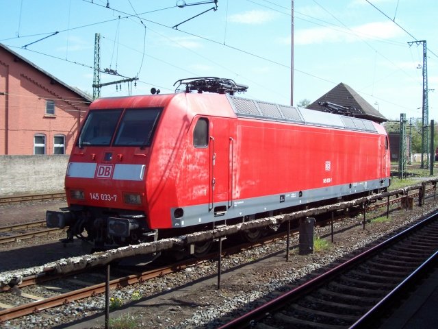 Railion 145 033-7 an der Drehscheibe (Kleines DB-Logo an den Seiten, Railion Deutschland AG, gesichtet Bebra 22.04.2007)