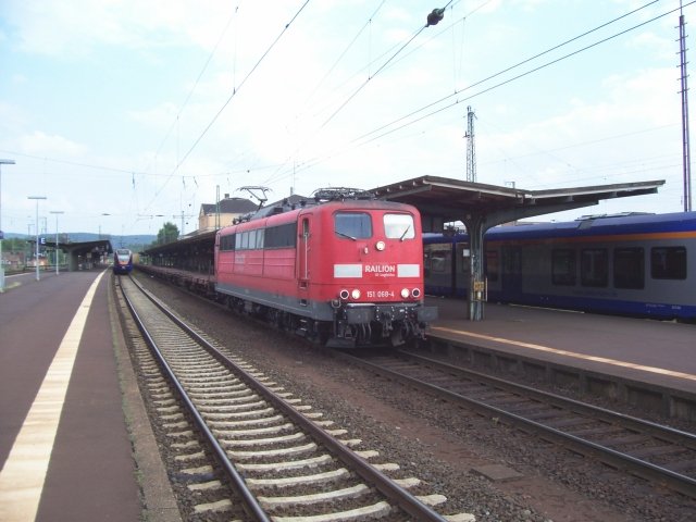 RAILION Logistics 151 068-4 mit leerem Autotransporter (Bebra, 12.06.2007)