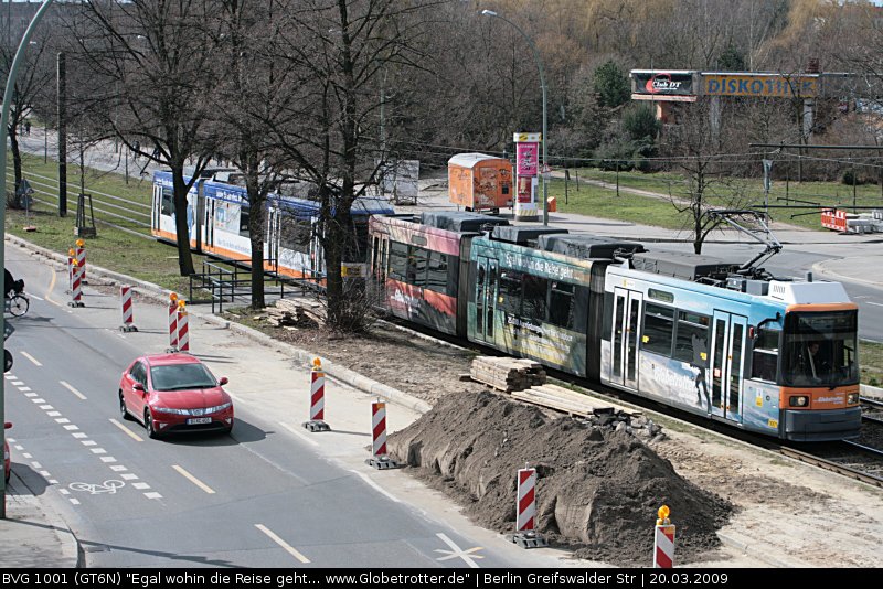 1001 (Typ GT6N)  Egal wohin die Reise geht...  (Berlin Greifswalder Str, 20.03.2009).
