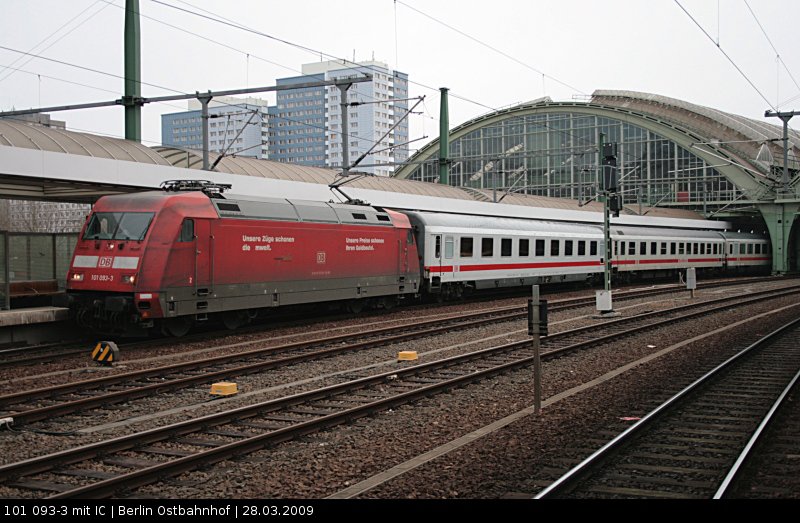 DB Fernverkehr 101 093-3  Unsere Züge schönen die Umwelt...  mit einem IC (Berlin Ostbahnhof, 28.03.2009).