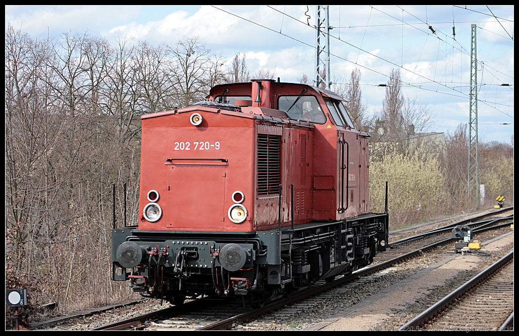 HVLE V 22.1 bringt den neu erworbenen Steuerwagen aus dem Bombardier-Werk zur Übergabe an die wartene RME 202 720-9 (Hennifsdorf b. Berlin 01.04.2010)