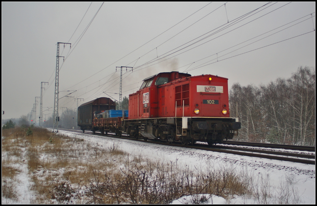 DB Schenker 140 070-2 mit Y-Transport in der Verbindungskurve nach Seddin mit Halt am Signal (gesehen Ludwigsfelde Genshagener Heide 07.04.2010)