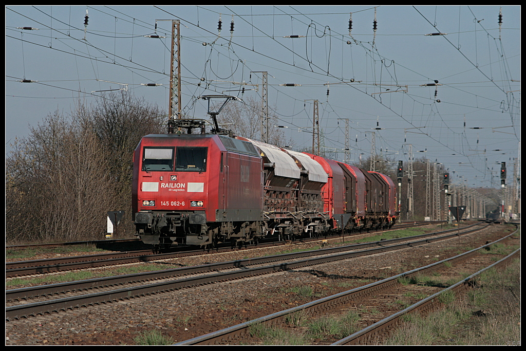 DB 233 625-3 mit gemischtem Güterzug lässt es kräftig rußen (Teleaufnahme, gesehen Nuthetal-Saarmund 07.04.2010)