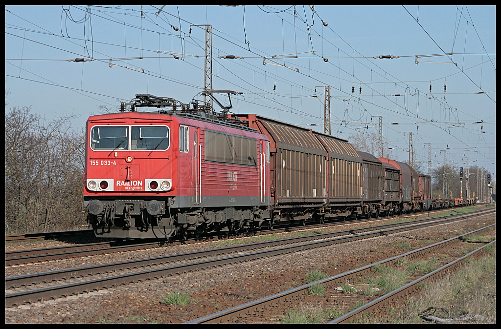 PKP Cargo EU43-006 mit gemischtem Güterzug (627 0005-7 2151, gesehen Nuthetal-Saarmund 07.04.2010)