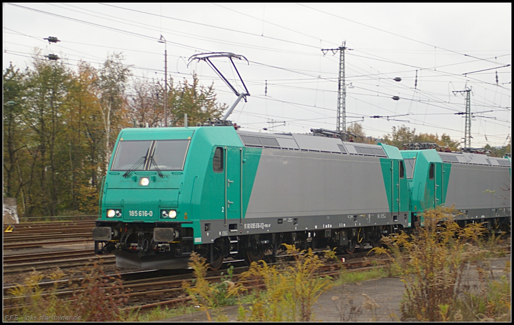 DB Schenker 155 006-7 mit einer Streiflichtaufnahme ihres Kesselzugs (gesehen Berlin Wuhlheide 13.10.2010)