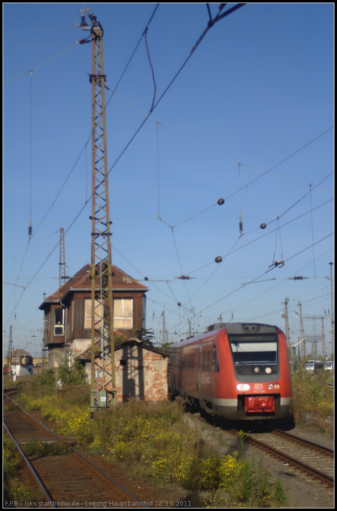 DB Regio 143 243 zieht ihren RE nach Dresden Hbf, hier Höhe Stellwerk Leipzig Hbf B34 (gesehen Leipzig Kohlweg 15.10.2011)
