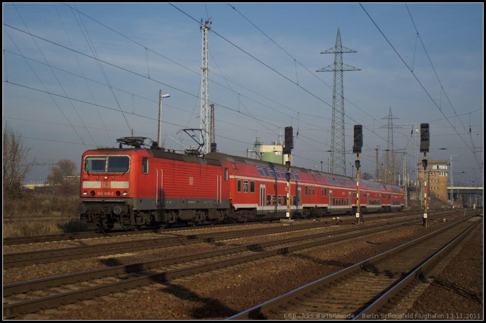 DB Schenker 155 243-9 hatte mit dem gemischten Güterzug keine Probleme (gesehen Berlin Schönefeld Flughafen 13.11.2011)