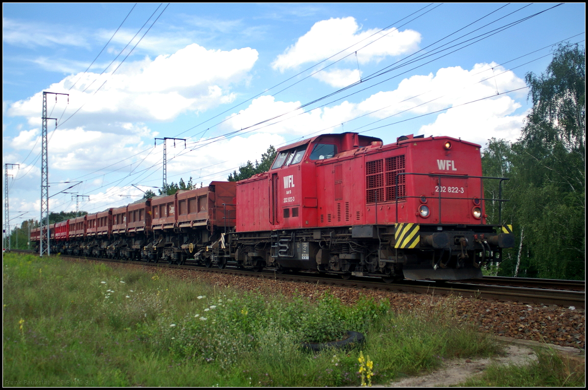 DB Schenker 155 132-4 mit einem Schotterzug am 23.07.2012 in Berlin Schönefeld Flughafen