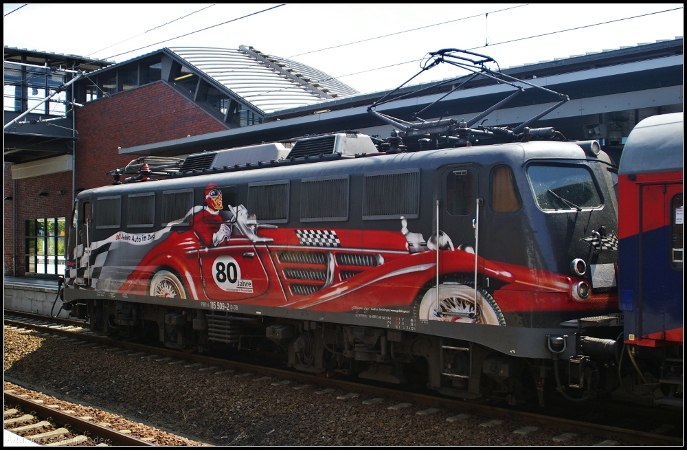 DB AutoZug 115 350 lief am Ende des von 115 205 am 12.03.2013 gezogenen Pbz mit. Eingereiht war auch der IC-Wagen "Ich bin anders. Na und?"