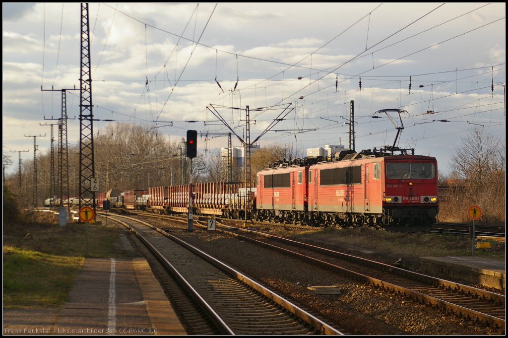 ITL CB 1001 / 266 106 mit Falls 401.5-Wagen eingestellt bei CZ-CDC und Kohle am 22.02.2014 durch Leipzig-Thekla nach Engelsdorf und von dort elektrisch weiter nach Bad Schandau (92 80 1266 106-4 D-ITL)