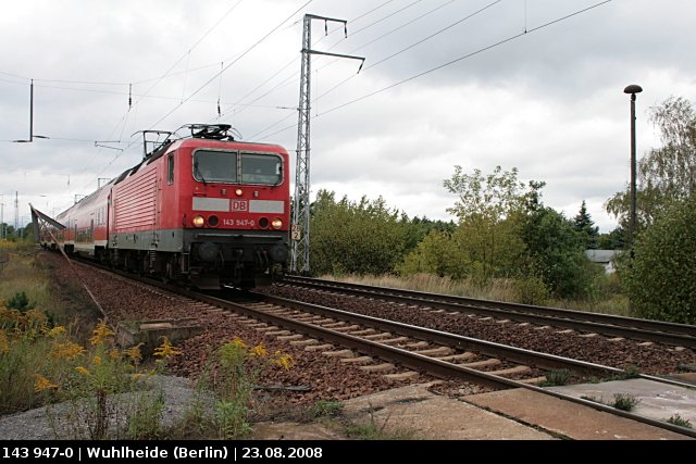 DB Regio 143 947-0 mit einem Regional-Express (gesichtet Berlin Wuhlheide, 23.08.2008)