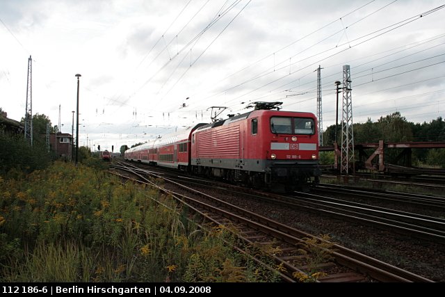 DB Regio 112 186-6 mit einem Regional-Express (DB Regio AG - RL Nordost Cottbus, gesichtet Berlin Hirschgarten, 04.09.2008).