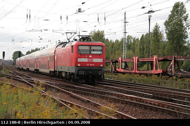 DB Regio 112 188-8 fuhr mit einem Regional-Express am 04.09.2008 durch Berlin Hirschgarten