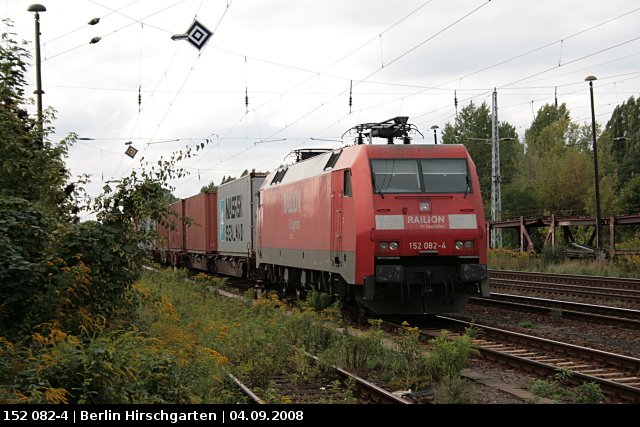 RAILION Logistics 152 082-4 mit Containerzug (Railion Deutschland AG, gesichtet Berlin Hirschgarten 04.09.2008)