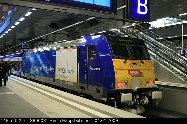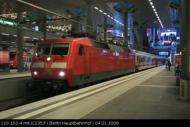 DB Fernverkehr 120 152-4 mit IC 2353 im Tiefgeschoß (Berlin Hauptbahnhof, 04.01.2009).