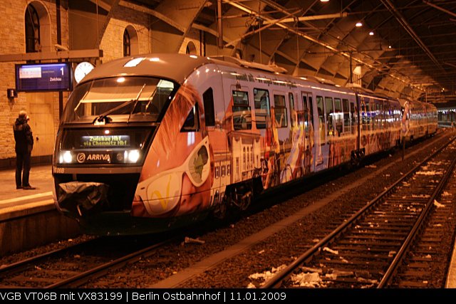 VT 06 / 642 306 des Vogtland-Express (VBG) steht zur Abfahrt nach Zwickau bereit (Berlin Ostbahnhof, 11.01.2009).