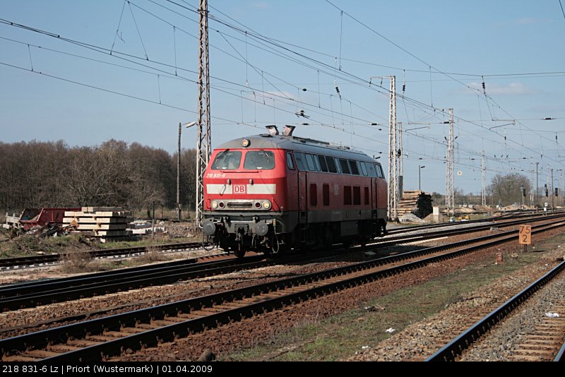 DB 218 831-6 Lz und einem Gruß an den Tf! (Priort/Wustermark, 01.04.2009).