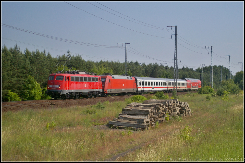 DB AutoZug 115 509 "80 Jahre Auto im Zug" mit einem Kreuzfahrer-Zug am 19.07.2013 Höhe Berlin Storkower Straße
