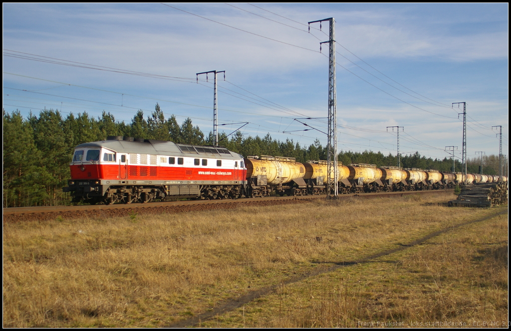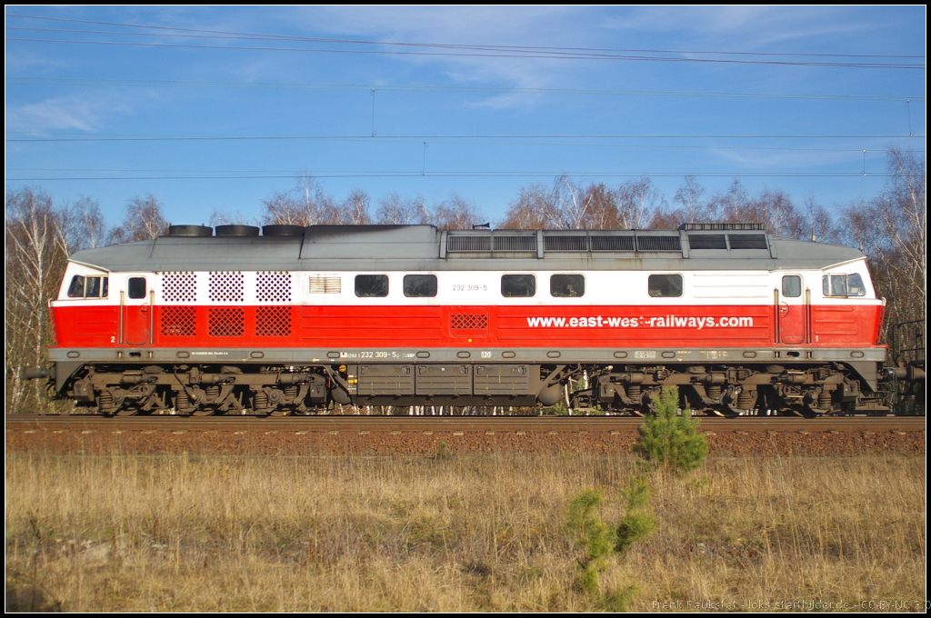 MEG 313 / 232 068-7 in der Profilansicht. Die Lok kam am 20.03.2014 mit Schüttgut am 20.03.2014 durch die Berliner Wuhlheide